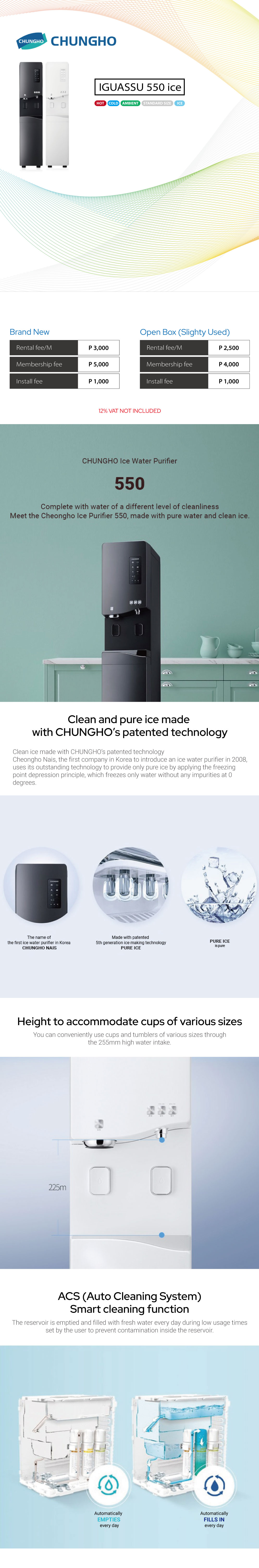 Cold water 2.7ℓ / Hot water 2.0ℓ / Purified water 5.0ℓ / Ice 1.0kg